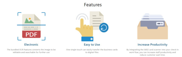 S602 digitalizes and organizes business cards with ease. Users can easily synchronize